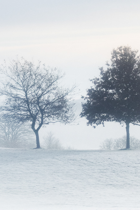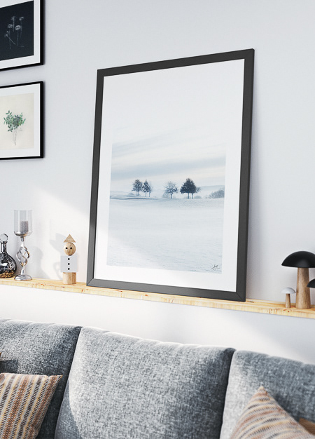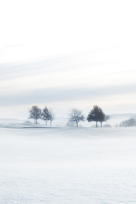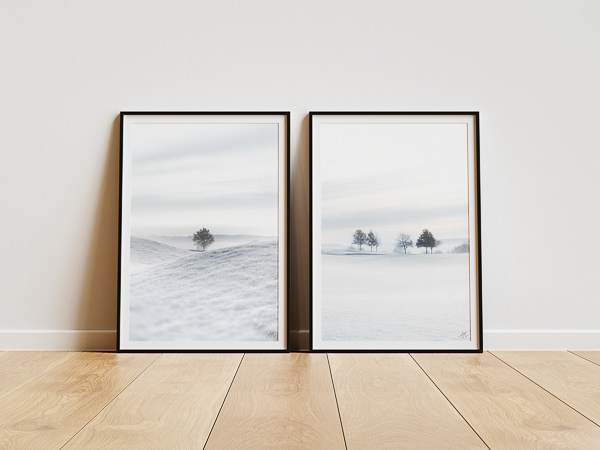 De spredte træer står adskilt, men i balance, omgivet af et åbent, næsten vægtløst rum. En rolig rytme opstår mellem gentagelse og forskel - et mentalt landskab, hvor stilheden skaber overblik, og hvor intet presser sig på.