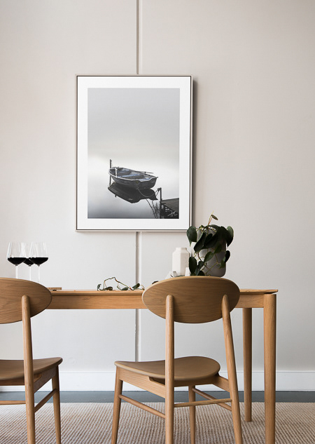 Billedet inviterer beskueren ind i et øjeblik uden hast. Bådens stille tilstedeværelse og det åbne rum af lys og vand skaber en følelse af ro, som om tiden er sat på pause. Jeg ønsker, at man mærker den langsomme rytme, hvor blikket falder til ro, og hvor selv små detaljer får lov at fylde. Et stille rum til at trække vejret og bare være.