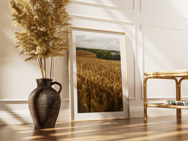 Reverie bevæger sig i grænselandet mellem opmærksomhed og fravær. Kornets tætte gentagelse fylder blikket, mens landskabet langsomt opløses bagved. Billedet inviterer ind i en tilstand, hvor tankerne vandrer frit, og hvor sansningen overtager styringen fra intentionen.