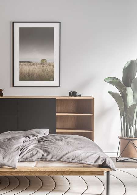 For mig kredser billedet om en tilstand af tilbagetrækning og indadvendthed. Det lille hus i det åbne landskab bliver et billede på isolation, men også på beskyttelse - et mentalt rum, hvor man trækker sig fra omverdenens kompleksitet. Den tunge himmel og det rolige, næsten stillestående landskab understøtter en stemning af eftertænksomhed, hvor stilheden fungerer som et sted for refleksion snarere end tomhed.