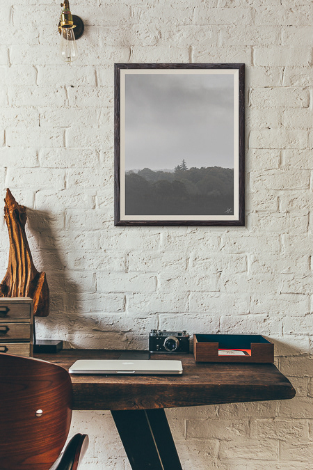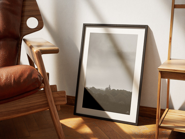 Kompositionen er bygget op i horisontale lag, hvor skov, dis og himmel glider over i hinanden. Kontrasterne er tilbageholdte, og billedets vægt ligger i overgangen snarere end i et centrum. Witness fastholder blikket i et grænseland mellem forgrund og uendelighed.